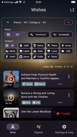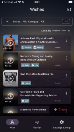 Use the playlist feature to bundle multiple desires into one session, streamlining your daily routine. - For those who want to transform their life positively